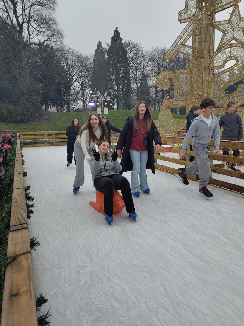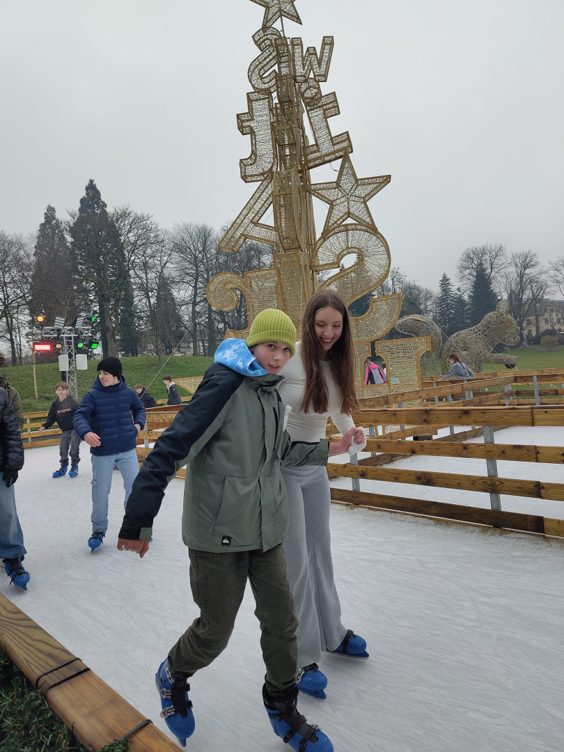 Après une heure de marche intense dans les rues illuminées de la ville, les élèves se sont rendus à la patinoire installée dans le parc Kinnekswiss pour faire du sport et s'amuser ensemble.