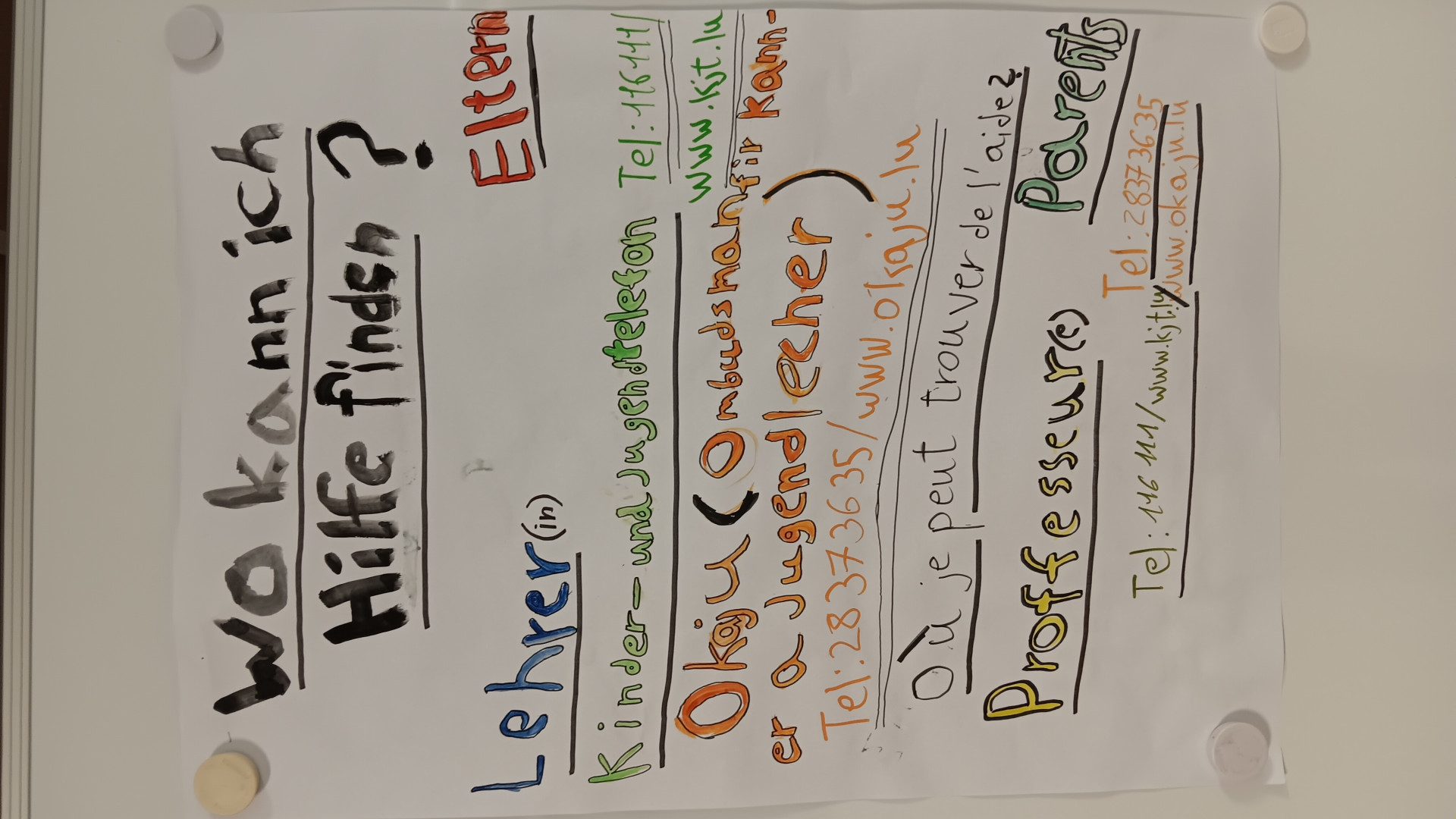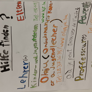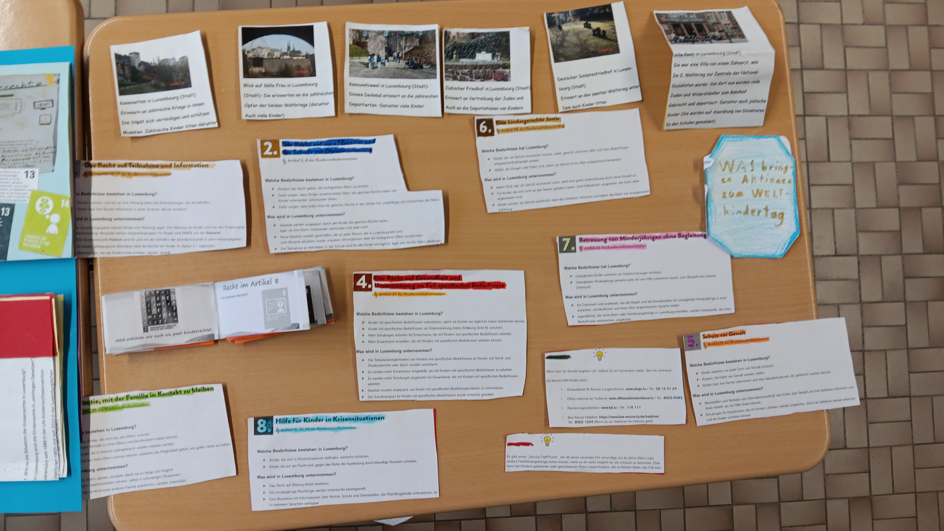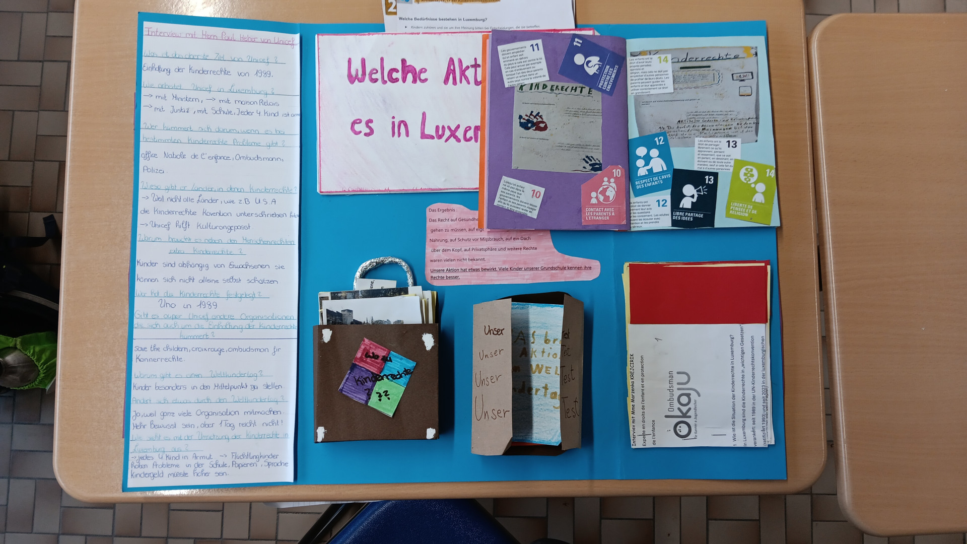 Außerdem haben sie im Internet recherchiert, welche Kinderrechte es gibt und welche Aktionen es rund um Kinderrechte und rund um den Weltkindertag in Luxembourg gibt.