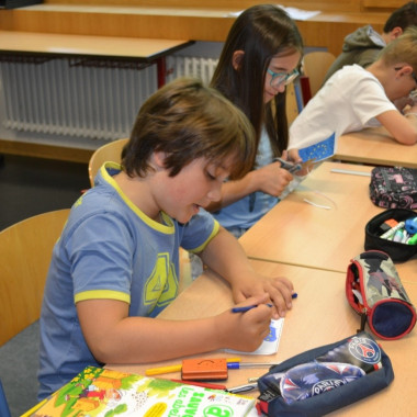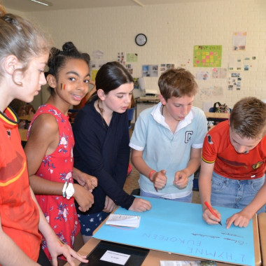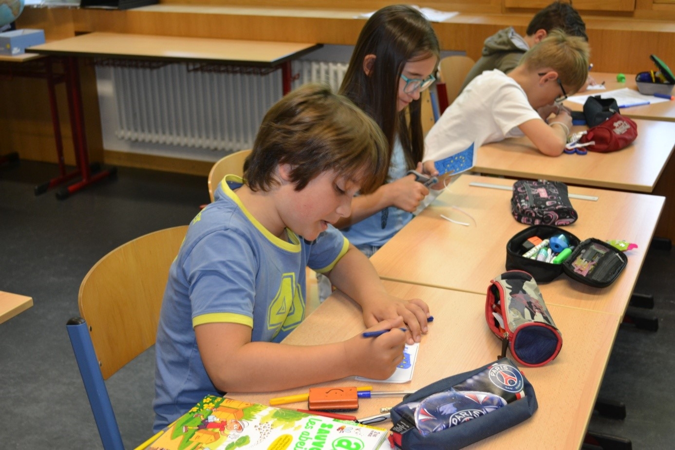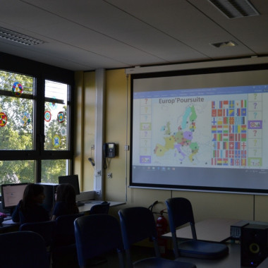 Les élèves de CE1 ont réalisé une grande fresque représentant les drapeaux des différents pays d’Europe. Les élèves de CE2 ont découvert la culture européenne et les symboles de l’Europe moderne tel le drapeau européen ou les lieux symboliques de l’Union Européenne. Les élèves de CM1 et de CM2 ont réalisé un quiz interactif avec lequel ils ont pu découvrir l’histoire de notre Europe.