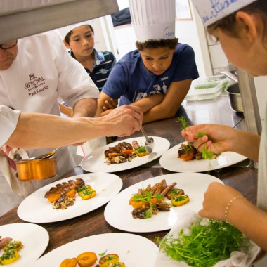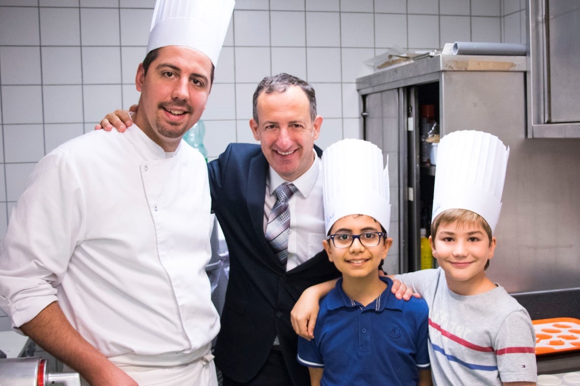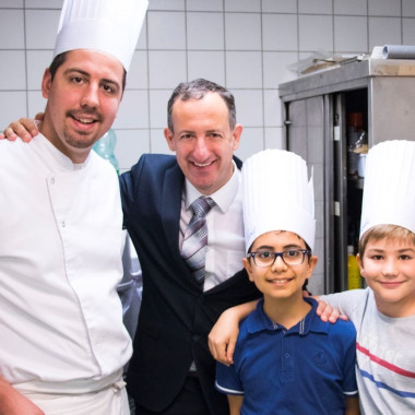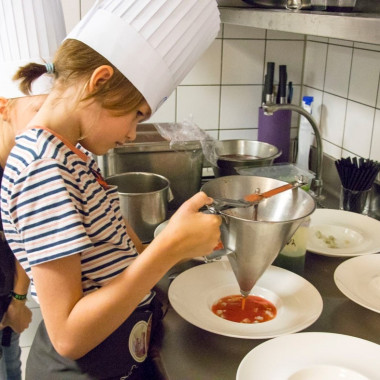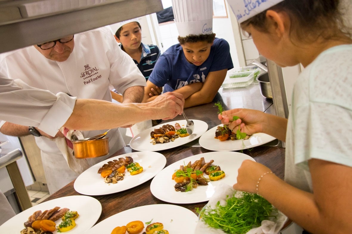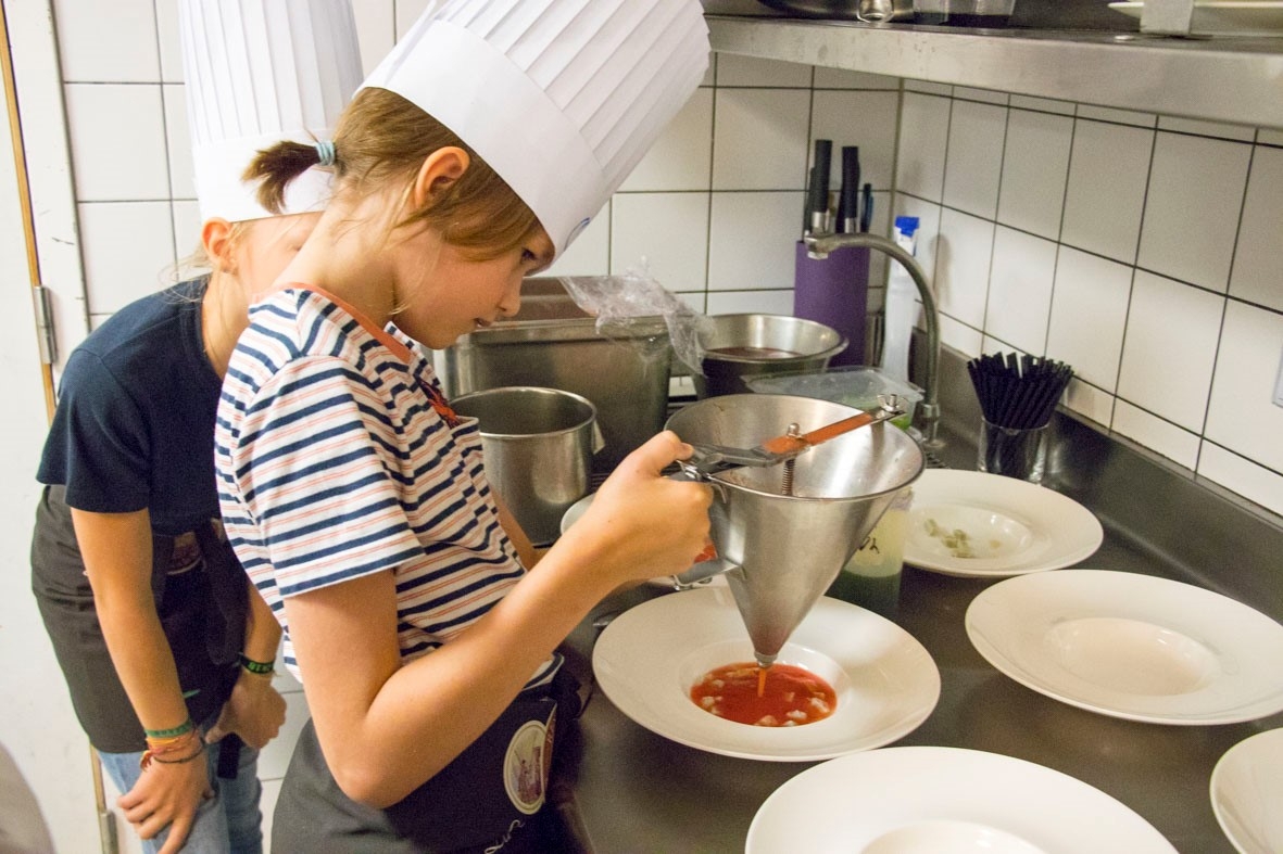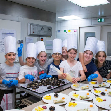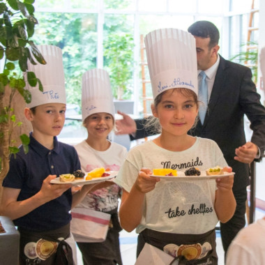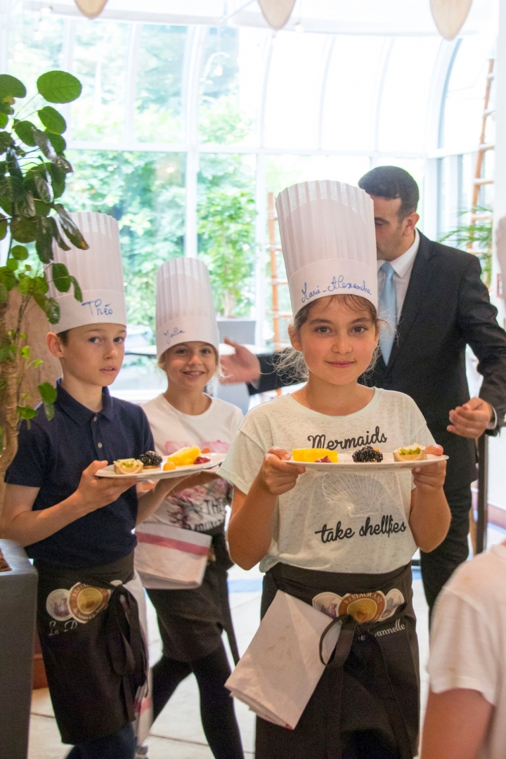 Vendredi 8 juin, les élèves de CM2D ont eu la chance de passer derrière les fourneaux d'un restaurant ! Ils ont ainsi pu concrétiser les créations culinaires élaborées depuis un mois en classe. La classe était partagée en trois groupes : un pour l'entrée, un autre pour le plat principal et le dernier était en charge du dessert. Leurs préparations ont ensuite été servies aux clients du restaurant, dont de nombreux parents. Le résultat était bluffant : une vraie mise en pratique de l'art culinaire et de la gastronomie ! Un grand bravo à eux !